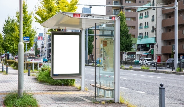 ビルの前に「末盛通二丁目」のバス停があります。