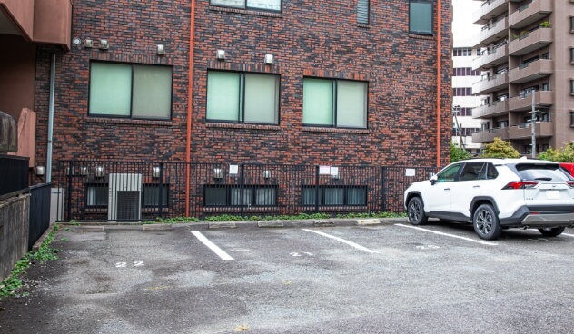 ビルを通り過ぎた一本目の道を左に曲がると、ビルの東側に2台分の駐車場があります。